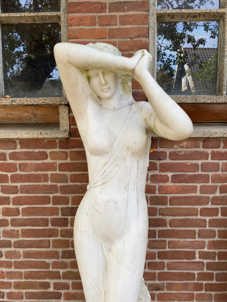Groot oud (ca 2 meter) marmeren tuinbeeld